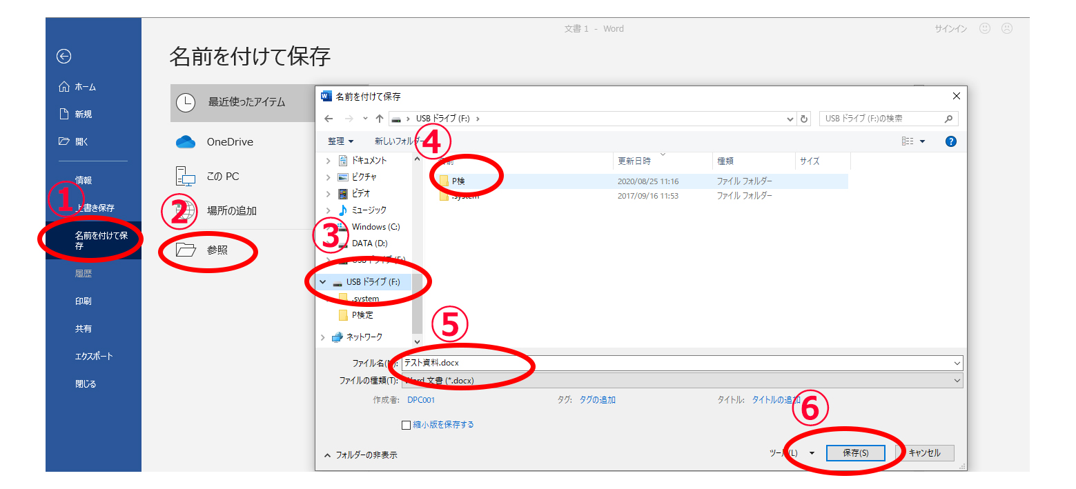ルミノーゾではみなさんにUSBメモリースティックを支給しています。訓練で使うパソコンは共用でお席も毎回変わります。でのすで、パソコンの中ではなく、USBに保存することをお願いしています。ここではUSBへの保存を例に解説します。